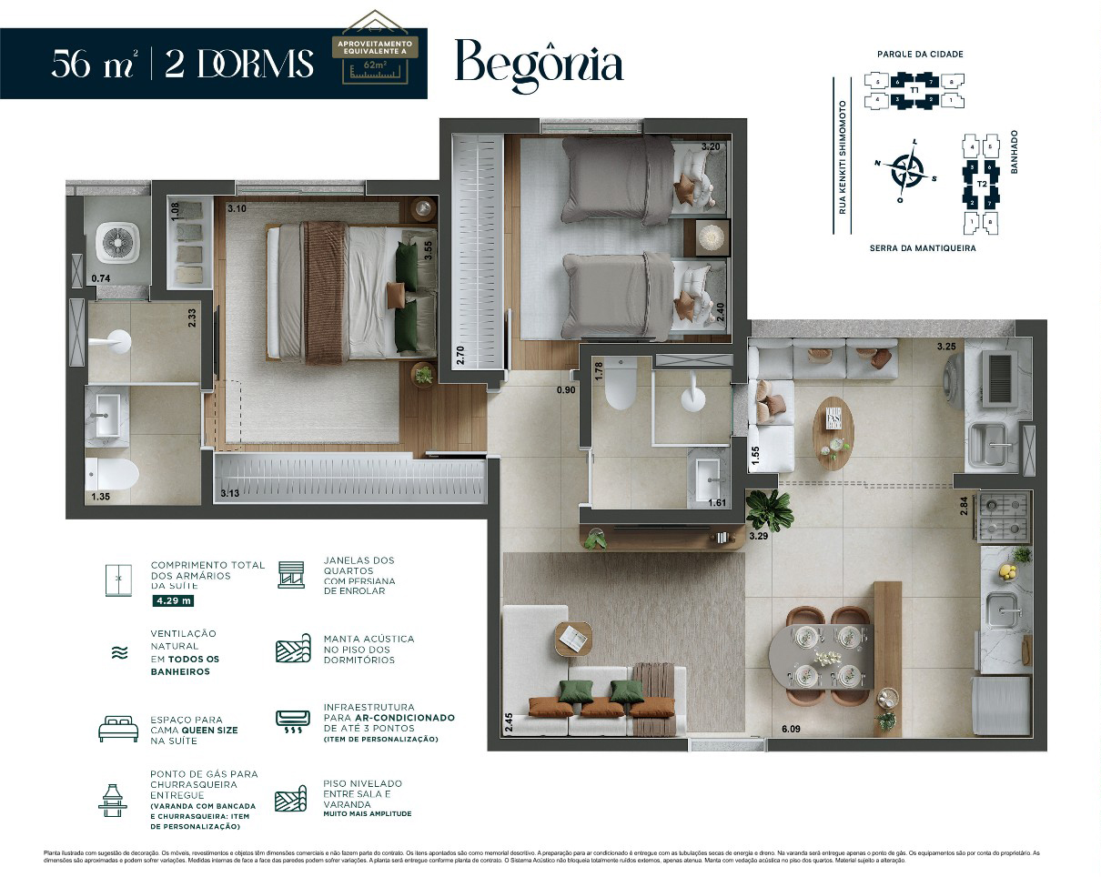 56m² - 2 Dorms e 1 Suíte